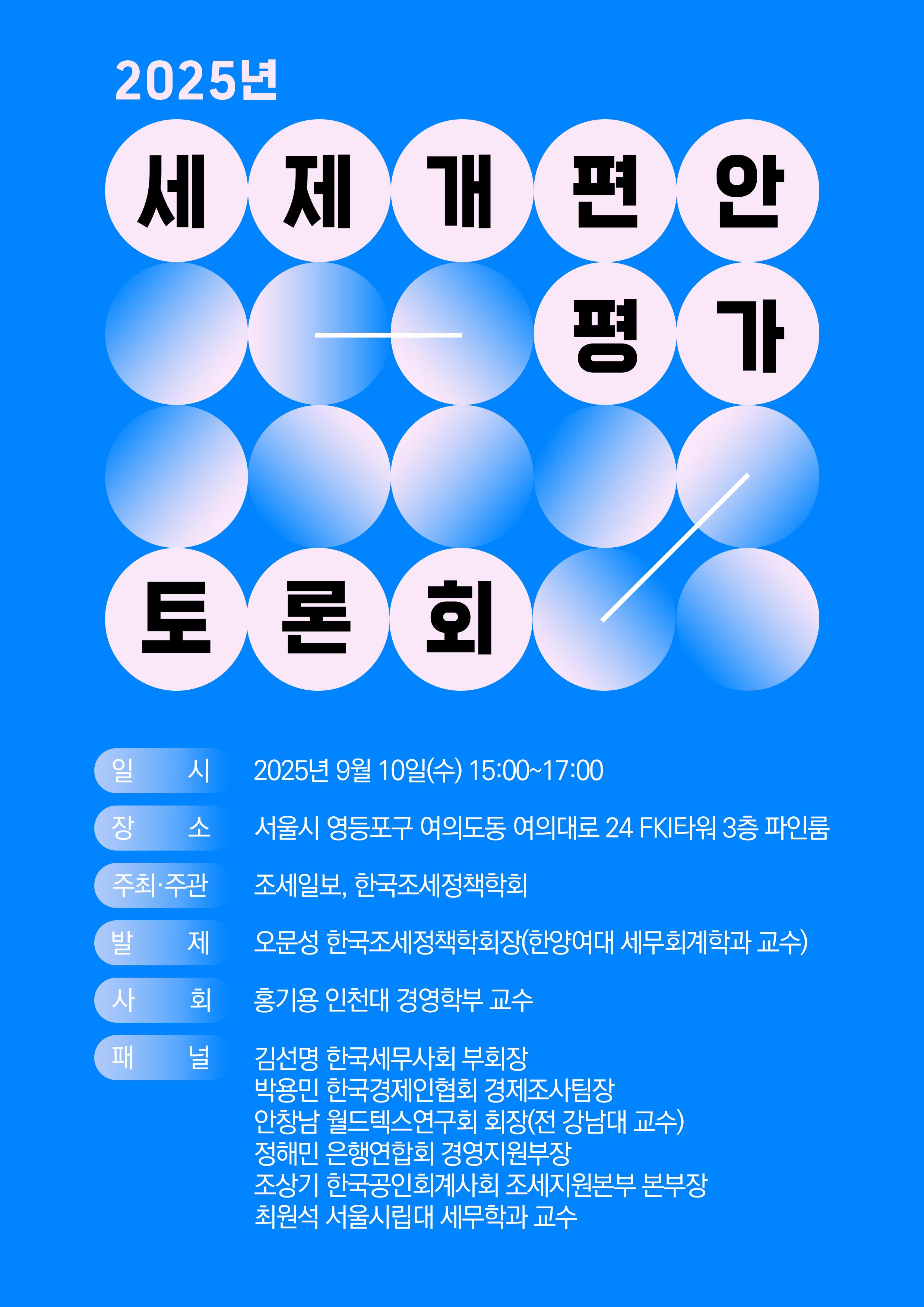Á¶¼¼ÀϺ¸´Â ¿À´Â 10ÀÏ(¼ö) ¿ÀÈÄ 3½ÃºÎÅÍ 5½Ã±îÁö ¼¿ï½Ã ¿µµîÆ÷±¸ FKIŸ¿ö 3Ãþ ÆÄÀη뿡¼ '2025³â ¼¼Á¦°³Æí¾È Æò°¡ Åä·Ðȸ'¸¦ °³ÃÖÇÕ´Ï´Ù.