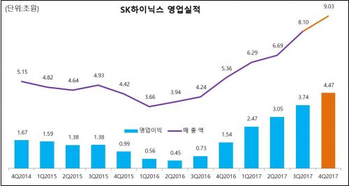 - SKÇÏÀ̴нº°¡ ¸Þ¸ð¸® ¹ÝµµÃ¼ ¼ö¿äÁõ°¡¿Í °¡°Ý »ó½Â¿¡ µû¸¥ È¿°ú¿¡ ÈûÀÔ¾î 2017³â »ç»ó ÃÖ´ë °æ¿µ ½ÇÀûÀ» ´Þ¼ºÇß´Ù. SKÇÏÀ̴нº´Â 26ÀÏ, Çѱ¹Ã¤Åà ±¹Á¦È¸°è±âÁØ(K-IFRS) 2017³â ¿¬°£ ¸ÅÃâ¾× 30Á¶..