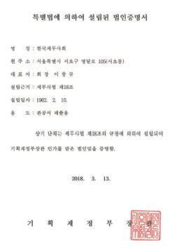 - Çѱ¹¼¼¹«»çȸ´Â Áö³ 13ÀÏ ±âȹÀçÁ¤ºÎ¿¡¼ ÀÌâ±Ô ¼¼¹«»ç ȸÀåÀÇ ´ëÇ¥ÀÚ ¸íÀÇ º¯°æÀ» ½ÂÀÎÇß´Ù°í 20ÀÏ ¹àÇû´Ù.Çѱ¹¼¼¹«»çȸ¿¡ µû¸£¸é ±âÀçºÎ´Â ¹ýÀδëÇ¥ÀÚ ¸íÀǸ¦ ÀüÀÓ ¹é¿îÂù ȸÀå¿¡¼ ÀÌâ..
