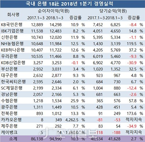 - ±¹³» ÀºÇà 18°³»çÀÇ ¿ÃÇØ 1ºÐ±â ¼øÀÌÀÚÀÌÀÍÀÌ µÎÀÚ¸®¼ö·Î Å« Æø ´Ã¾ú´Ù. ±Ý¸® »ó½Â¼¼·ÎNIM(¼øÀÌÀÚ¸¶Áø)ÀÌ ´Ã¾úÁö¸¸ ´ç±â¼øÀÌÀÍÀº½ÅÅëÄ¡ ¾ÊÀº ÆíÀ̾ú´Ù. Áö³ÇØ ¿ª´ë ÃÖ´ë ½ÇÀûÀ» º¸¿´´ø ´ëÇü ½Ã..