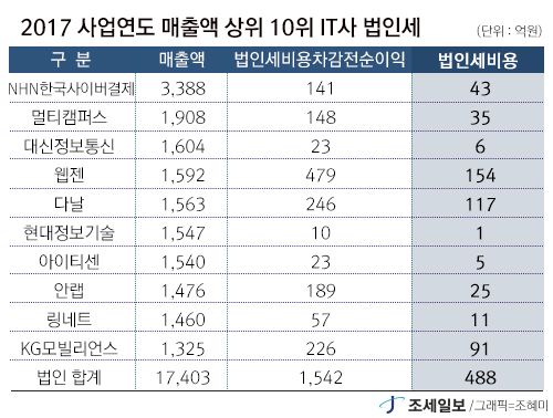 - 19ÀÏ Á¶¼¼ÀϺ¸(www.joseilbo.com)°¡ 2017³â ±âÁØ ¸ÅÃâ¾× »óÀ§ 10´ë IT»çÀÇ È¸°è¿¬µµ »ç¾÷º¸°í¼¸¦ ºÐ¼®ÇÑ °á°ú Áö³ÇØ À¥Á¨ÀÇ ¹ýÀμ¼ ºÎ´ã¾×(2017³â ±Í¼Ó)Àº ¾à 154¾ï¿øÀ¸·Î 10´ë IT»ç Áß °¡..
