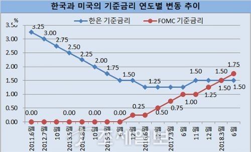 - ¹Ì±¹ ¿¬¹æÁغñÁ¦µµ(Fed)°¡ ±âÁرݸ®¸¦ ÀλóÇÔ¿¡ µû¶ó Çѹ̰£ ±âÁرݸ® °ÝÂ÷°¡ 0.25~0.50%·Î È®´ëµÆ´Ù. ¹Ì±¹Àº 2015³â 12¿ù Á¦·Î(0) ±Ý¸® ½Ã´ëÀÇ Å»ÇǸ¦ ¼±¾ðÇÑ ÀÌ·¡ Áö³ 13ÀϱîÁö 7Â÷·Ê ±Ý..