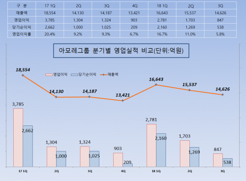 - ¾Æ¸ð·¹±×·ì, 3ºÐ±â ¿µ¾÷ÀÌÀÍ 36%¡é¡¦¼öÀÍ 'Àû½ÅÈ£'2018.11.01 08:01