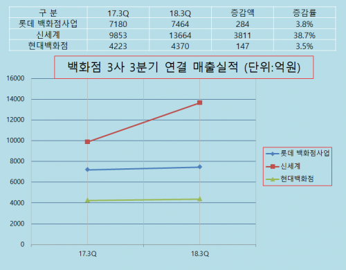 - ·Ôµ¥ ¹éÈÁ¡ ½Å¼¼°è Çö´ë¹éÈÁ¡ µî ¹éÈÁ¡ ¾÷°è ºò3 °¡¿îµ¥ ½Å¼¼°è°¡ 3ºÐ±â ¿¬°á±âÁØ ¸ÅÃâ ¼ºÀå¼¼°¡ °¡Àå ³ôÀº °ÍÀ¸·Î ³ªÅ¸³µ´Ù. ·Ôµ¥¼îÇÎ ¹éÈÁ¡»ç¾÷ºÎ´Â ¿µ¾÷ÀÌÀÍÀÌ °¡Àå Å« ÆøÀ¸·Î ..