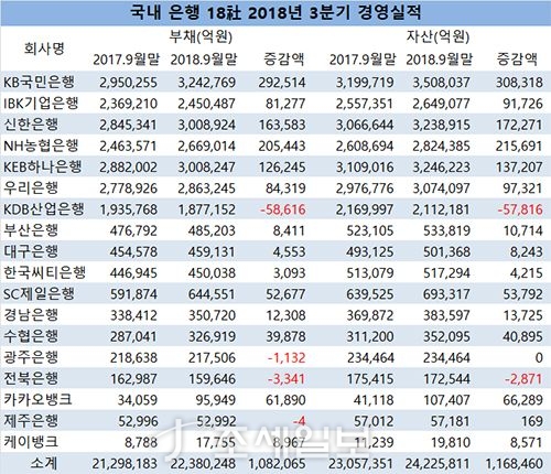 - ±¹³» ÀºÇàµéÀÇ9¿ù¸» ÇöÀç ºÎä¿Í ÀÚ»ê ±Ô¸ð°¡ Àü³âµ¿±â¿¡ ºñÇØ 5% ³Ñ°Ô Áõ°¡Çß´Ù. ÀºÇàµéÀÌ ¿¹±Ý µî ºÎ並 ´Ã¸±¼ö·Ï ´ëÃâÀ» ¸¹ÀÌ ÇÒ ¼ö ÀÖ´Â ¿©·ÂÀ» °®°Ô µÅ ´õ ¸¹Àº ¼öÀÍÀ» ³¾ ¼ö ÀÖ°Ô µÈ´Ù..