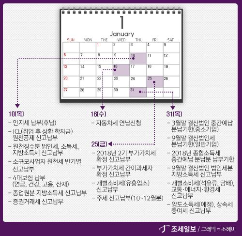 - 1¿ùÀº »ç¾÷ÀÚµéÀÌ °¡Àå °ü½ÉÀ» µÎ¾î¾ß ÇÑ´Ù. Áö³ÇØ »ç¾÷½ÇÀû¿¡ ´ëÇÑ ºÎ°¡°¡Ä¡¼¼¸¦ ³»¾ßÇÏ´Â ´ÞÀ̱⠶§¹®ÀÌ´Ù. ¹ýÀÎÀº Áö³ÇØ 10¿ù~12¿ù±îÁö, °³ÀÎ ÀϹݰú¼¼ÀÚ´Â 7~12¿ù±îÁö, °£À̰ú¼¼ÀÚ(°³..