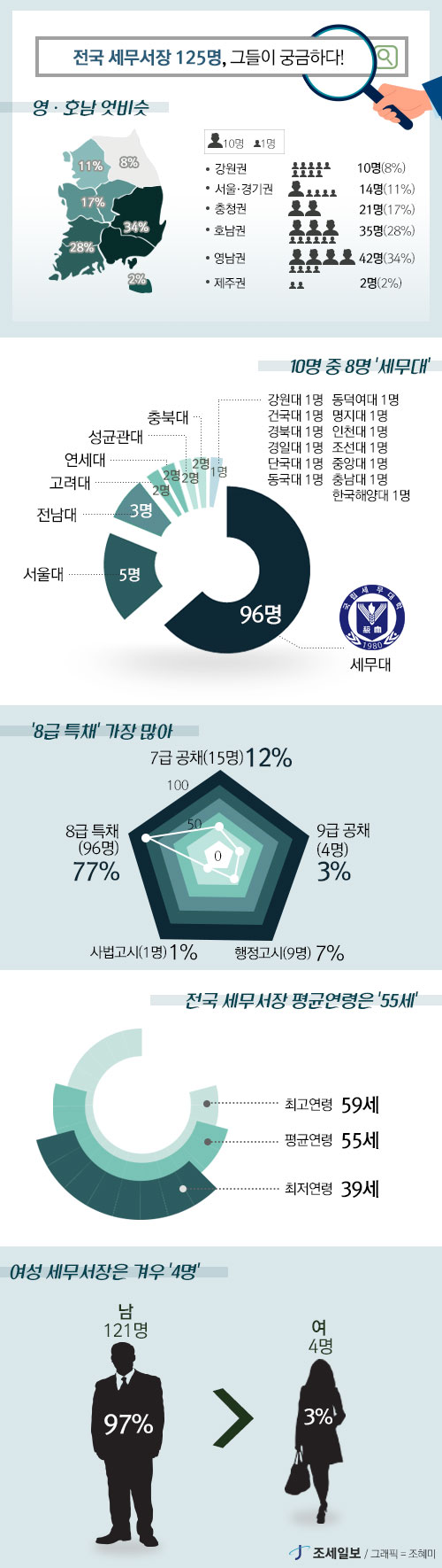 - '¼¼¹«´ë¸¦ Á¹¾÷ÇÑ 55¼¼ ³²¼º'. Àü±¹ 125¸í ¼¼¹«¼ÀåÀÇ Æò±ÕÀûÀÎ ¸ð½ÀÀÌ´Ù. 2019³â 4¿ù26ÀÏ ÇöÀç Àüü 125¸íÀÇ ÇöÁ÷ ¼¼¹«¼Àå Áß 77%ÀÎ 96¸íÀÌ '¼¼¹«´ëÇÐ' µ¿¹®µéÀÌ´Ù. Áö³ 2001³â ..