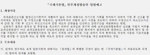 - '±¹¼¼ÀÇ ¹üÀ§¿¡ °ü¼¼¸¦ Æ÷ÇÔÇÑ´Ù.' ¿ÃÇØ ±âȹÀçÁ¤ºÎÀÇ ¼¼¹ý°³Á¤¾È(ÀÔ¹ý¿¹°í)¿¡ ´ã±ä ÀÌ ÇÑ ¹®ÀåÀÌ ÆÄÀåÀ» ¸ô°í¿Ô´Ù. ±¹¼¼±âº»¹ý¿¡¼ ±ÔÁ¤Çϰí ÀÖ´Â ±¹¼¼ÀÇ Á¤ÀÇ, ¼¼¹ý Àû¿ë ¿øÄ¢ µî¿¡ °ü¼¼µµ ..