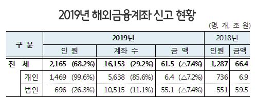 - ¿ÃÇØ ÇØ¿Ü±ÝÀ¶°èÁ ½Å°í±Ý¾× ±âÁØÀÌ 5¾ï¿øÀ¸·Î °ÈµÇ¸é¼ ½Å°íÀοøÀÌ Àü³â ´ëºñ 68%³ª Áõ°¡ÇÑ °ÍÀ¸·Î ³ªÅ¸³µ´Ù. ±¹¼¼Ã»Àº ¿ÃÇØ 6¿ù ½Ç½ÃÇÑ ÇØ¿Ü±ÝÀ¶°èÁ ½Å°í °á°ú, 2165¸íÀÌ ÃÑ 61Á¶5000..