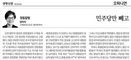 - ´õºÒ¾î¹ÎÁÖ´çÀÌ '¹ÎÁִ縸 »©°í' Ä®·³À» ¾´ Àӹ̸® °í·Á´ë Çѱ¹»ç¿¬±¸¼Ò ¿¬±¸±³¼ö¿Í °æÇâ½Å¹®À» °ËÂû¿¡ °í¹ßÇÑ µ¥ ´ëÇÑ ºñÆÇ¿©·ÐÀÌ ±Þ¼ÓÈ÷ È®»êµÇÀÚ, À̳«¿¬ Àü ±¹¹«ÃѸ®(¹ÎÁÖ´ç Á¾·Î Èĺ¸)°¡ ..