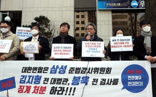 - ½Ã¹Î´Üü°¡ º¯È£»çÀÇ Ç°À§À¯Áö Àǹ«¸¦ À§¹ÝÇß´Ù´Â ÀÌÀ¯·Î »ï¼º Áعý°¨½ÃÀ§¿øÈ¸ À§¿øÀåÀÎ ±èÁöÇü Àü ´ë¹ý°ü°ú À§¿øÀÎ ºÀ¿í Àü ´ë°ËÂûû Â÷Àå°Ë»ç¿¡ ´ëÇØ ¡°èÇÒ °ÍÀ» ´ëÇѺ¯È£»çÇùȸ¿¡ ¿ä±¸Çß..