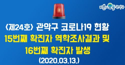 - °ü¾Ç±¸¿¡¼ ½ÅÁ¾ Äڷγª¹ÙÀÌ·¯½º°¨¿°Áõ(Äڷγª19) È®ÁøÀÚ°¡ ¹ß»ýÇß´Ù. 13ÀÏ °ü¾Ç±¸¿¡ µû¸£¸é 16¹øÂ° 'Äڷγª19' È®ÁøÀڴ û·æµ¿¿¡ °ÅÁÖÇÏ´Â ±¸¹Î A ¾¾·Î 15¹øÂ° È®ÁøÀÚÀÇ È¸»ç µ¿·á´Ù. ÀÌ..