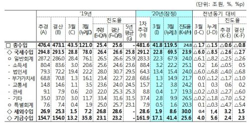 - ¿ÃÇØ 3¿ù±îÁö Á¤ºÎ°¡ °ÅµÖµéÀÎ ±¹¼¼¼öÀÔ ½ÇÀûÀÌ Áö³ÇØ °°Àº ±â°£¿¡ ºñÇØ 8Á¶5000¾ï¿øÁÙ¾îµç °ÍÀ¸·Î ³ªÅ¸³µ´Ù. ±âȹÀçÁ¤ºÎ°¡ 7ÀÏ ¹ßÇ¥ÇÑ '5¿ù ¿ù°£ ÀçÁ¤µ¿Çâ'¿¡ µû¸£¸é ¿ÃÇØ 1~3¿ù ´©°è±âÁØ..