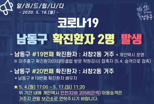 - ÀÎõ½Ã ³²µ¿±¸¿¡¼ ÀÌÅ¿ø Ŭ·´ °ü·Ã½ÅÁ¾ Äڷγª¹ÙÀÌ·¯½º °¨¿°Áõ(Äڷγª19) Ãß°¡ È®ÁøÀÚ°¡ ¹ß»ýÇß´Ù. 18ÀÏ ³²µ¿±¸Ã»Àº "ÀÌÅ¿ø Ŭ·´ °ü·Ã ³²µ¿±¸ 19¹ø, 20¹ø È®ÁøÀÚ°¡ ¹ß»ýÇß´Ù"¸ç "19¹øÂ° ..
