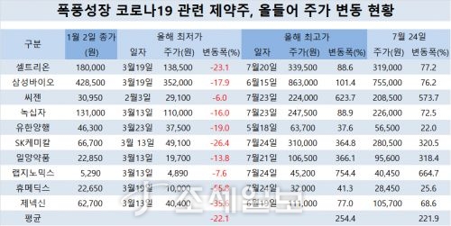 - Äڷγª19 °ü·Ã Á¦¾à¡¤¹ÙÀÌ¿ÀÁÖ¸¦ ºñ·ÔÇØ Áø´ÜŰƮ Á¦Á¶¾÷üµéÀÇ ÁÖ°¡°¡ ¿ÃÇØ µé¾î ÆøÇ³¼ºÀåÀ» º¸À̰í ÀÖ½À´Ï´Ù.Á¶¼¼ÀϺ¸°¡ Äڷγª19 Á¦¾à°ü·Ã ÁÖ¿ä Á¾¸ñÀÇ ÁÖ°¡ º¯µ¿ÆøÀ» Á¶»çÇÑ °á°ú À̵é 10°³..