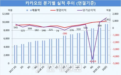 - īī¿À°¡ ¿ÃÇØ 2ºÐ±â ¿ª´ë ÃÖ°í ½ÇÀûÀ» ±â·ÏÇß½À´Ï´Ù. ±×·¯³ª ÁÖ°¡´Â µÇ·¹ Ç϶ôÇϸç '¿ªÁÖÇà' Çß½À´Ï´Ù.īī¿À´Â 2ºÐ±â ¿¬°á±âÁØÀ¸·Î ÀáÁ¤ Áý°èÇÑ ¸ÅÃâ¾×ÀÌ 9529¾ï¿øÀ¸·Î Àü³âµ¿±âº¸´Ù 30.0% Áõ..