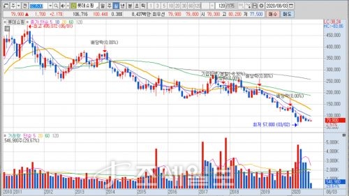 - ·Ôµ¥¼îÇÎÀÇ ÇöÀçÀÇ ÁÖ°¡´Â Àü¹®°¡µéÀÌ ÀϹÝÅõÀÚÀڵ鿡°Ô Á¶¾ðÇÏ´Â Àå±âÅõÀÚ ±ÇÀ¯¸¦ ¹«»ö°ÔÇϰí ÀÖ½À´Ï´Ù.·Ôµ¥¼îÇÎÀÇ 10ÀÏ ÁÖ°¡´Â Àü°Å·¡ÀϺ¸´Ù 1700¿ø(2.2%) ¿À¸¥ 7¸¸9900¿øÀ¸·Î ÀåÀ» ¸¶°¨Çß½À..