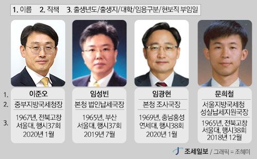 - ¡à °íÀ§°ø¹«¿ø °¡±Þ(3¸í) ±¹¼¼Ã» Â÷Àå ¹®Èñö(¼¿ïû ¼º½Ç³³¼¼)¼¿ïÁö¹æ±¹¼¼Ã»Àå ÀÓ±¤Çö(±¹¼¼Ã» Á¶»ç)ºÎ»êÁö¹æ±¹¼¼Ã»Àå ÀÓ¼ººó(±¹¼¼Ã» ¹ýÀγ³¼¼) ¡à °íÀ§°ø¹«¿ø ³ª±Þ(19¸í) ´ëÀüÁö¹æ±¹¼¼Ã»Àå ÀÌû·æ(±¹¼¼Ã» ¼ÒµæÁö¿ø)±¤ÁÖÁö¹æ±¹¼¼Ã»Àå ¼Û±âºÀ(±¹..