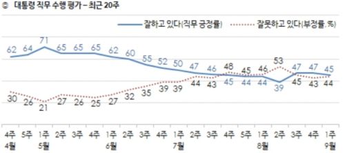 - ¹®ÀçÀÎ ´ëÅë·ÉÀÇ ±¹Á¤¼öÇà ÁöÁöÀ²ÀÌ ¼ÒÆø Ç϶ôÇÑ 45%·Î ³ªÅ¸³µ´Ù. ÃÖ±Ù ÀÇ»ç ÆÄ¾÷ Àå±âÈ·Î ÀÎÇÑ ±¹¹ÎÀû ½Ç¸Á°¨ÀÌ ¿µÇâÀ» ³¢ÃÆ´Ù´Â °üÃøÀÌ´Ù. ¿©·ÐÁ¶»ç Àü¹®±â°ü Çѱ¹°¶·´ÀÌ Áö³ 1ÀϺÎÅÍ 3..