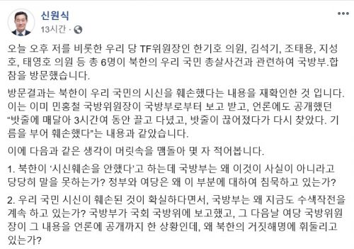 - ½Å¿ø½Ä ±¹¹ÎÀÇÈû ÀÇ¿øÀº 28ÀÏ ¼Ò¿¬Æòµµ ¿ì¸® °ø¹«¿ø ÇÇ»ì»ç°Ç °æÀ§ È®ÀÎ Â÷ ±¹¹æºÎ¸¦ ¹æ¹®ÇÑ °Í°ú °ü·Ã, "¹æ¹®°á°ú´Â ºÏÇÑÀÌ ¿ì¸® ±¹¹ÎÀÇ ½Ã½ÅÀ» ÈѼÕÇß´Ù´Â ³»¿ëÀ» ÀçÈ®ÀÎÇÑ °Í"À̶ó°í ¹àÇû´Ù...
