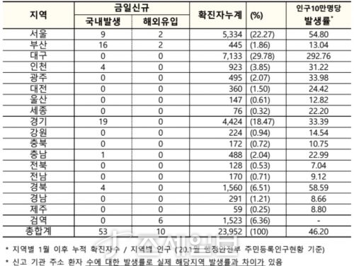 - Áúº´°ü¸®Ã» Á߾ӹ濪´ëÃ¥º»ºÎ´Â 2ÀÏ 0½Ã ±âÁØ ±¹³» ¹ß»ý ½Å±Ô È®ÁøÀÚ´Â 53¸í, ÇØ¿ÜÀ¯ÀÔ »ç·Ê´Â 10¸íÀÌ È®ÀεŠÃÑ ´©Àû È®ÁøÀÚ¼ö´Â 2¸¸ 3962¸í, ÇØ¿ÜÀ¯ÀÔ 3247¸íÀ̶ó°í 27ÀÏ ¹àÇû´Ù. ½Å±Ô °Ý¸®ÇØ..