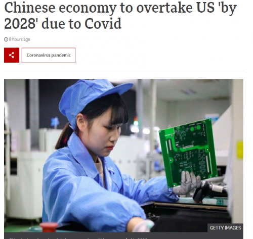 - BBC´Â 25ÀÏ(ÇöÁö½Ã°£) ¿µ±¹ ½ÌÅ©ÅÊÅ© °æÁ¦°æ¿µ¿¬±¸¼Ò(CEBR)°¡ Áß±¹ÀÌ ¿¹»óº¸´Ù 5³â ºü¸¥ 2028³â±îÁö ¹Ì±¹À» Ãß¿ùÇØ ¼¼°è ÃÖ°í °æÁ¦ ±¹°¡°¡ µÉ °ÍÀ̶ó´Â Àü¸ÁÀ» ³»³õ¾Ò´Ù°í º¸µµÇß´Ù. BBC¿¡..