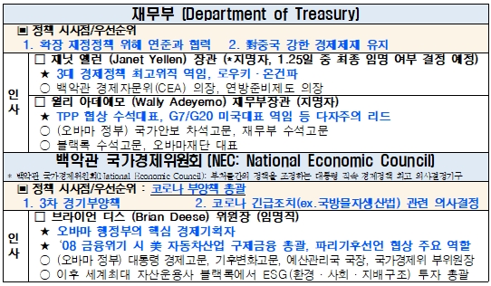 - ¹ÙÀÌµç ¹Ì±¹ ´ëÅë·É ÃëÀÓ ÈÄ ³»°¢ Àλçû¹®È¸ ¹× ÁÖ¿äÁ÷ ÀÓ¸íÀÌ ¼Óµµ¸¦ ³»°í ÀÖ´Â °¡¿îµ¥, 26ÀÏ Àü±¹°æÁ¦Àο¬ÇÕȸ´Â ¹ÙÀ̵ç ÇàÁ¤ºÎÀÇ °æÁ¦ºÎ¹® Àλç·Î º» Á¤Ã¥¹æÇâ°ú ÀÌ¿¡ µû¸¥ ¹ÙÀ̵ç Á¤ºÎ ..