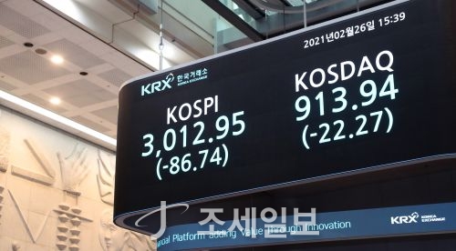 - ÄÚ½ºÇǰ¡ ¹Ì±¹ ±¹Ã¤±Ý¸® »óȲ¿¡ ¿µÇâÀ» ¹ÞÀ¸¸ç ³Î¶Ù±â Àå¼¼¸¦ À̾°í ÀÖ´Ù. Áö³ 24ÀÏ 2.45% ±Þ¶ô, 3000¼± ¾Æ·¡·Î ³»·Á°£ Áö¼ö´Â 25ÀÏ 3.5% Æøµî, 3100¼± ºÎ±Ù±îÁö Ä¡¼Ú¾Ò´Ù. 26ÀÏ¿¡´Â ..