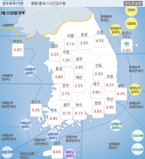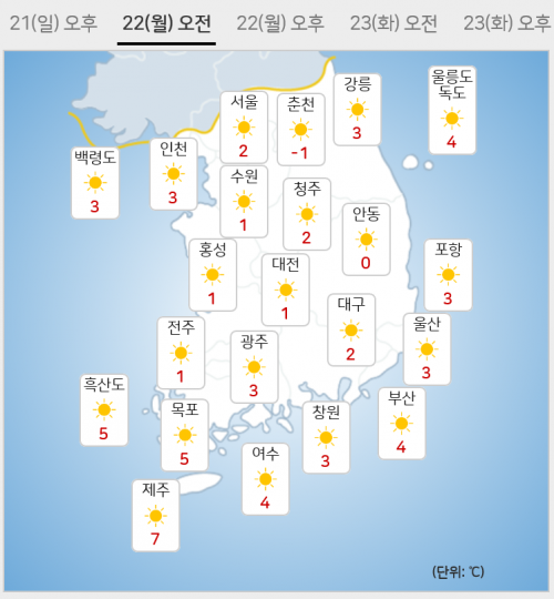 - ¿ù¿äÀÏ(22ÀÏ) ¾ÆÄ§ ±â¿ÂÀº ÀÏ¿äÀϺ¸´Ù 2~6µµ ´õ ¶³¾îÁ® Àü±¹ ´ëºÎºÐ Áö¿ª¿¡¼ 0µµ ³»¿Ü(ƯÈ÷, °æ±âºÏºÎ¿Í °¿ø¿µ¼, ÀÏºÎ ÃæÃ»³»·ú, ÀüºÏµ¿ºÎ, °æºÏºÏºÎ´Â ¿µÇϱÇ)ÀÇ ºÐÆ÷¸¦ º¸ÀÌ¸ç ½Ò½Ò..