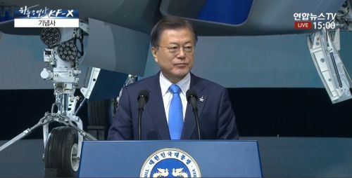 - ¹®ÀçÀÎ ´ëÅë·ÉÀº 9ÀÏ ¿ÀÈÄ 2½Ã 30ºÐ °æ³² »çõ Çѱ¹Ç×°ø¿ìÁÖ»ê¾÷(KAI) »ý»ê°øÀå¿¡¼ ¿¸° KF-21 'º¸¶ó¸Å' ½ÃÁ¦ 1È£±â Ãâ°í½Ä¿¡ Âü¼®ÇØ ¿ì¸® ¼ÕÀ¸·Î ¼³°èÇϰí Á¦ÀÛÇÑ ÀüÅõ±âÀÇ Ã¹ Ãâ°í¸¦ ÃàÇÏÇÏ..