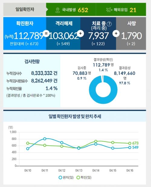 - 'Äڷγª19' ½Å±ÔÈ®Áø 673¸í¡¦ÀÌÆ²Â° 600¸í´ë ÈĹÝ2021.04.16 09:35