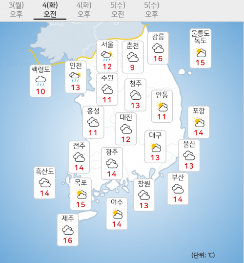 - Áß±¹ »óÇØ ºÎ±Ù¿¡¼ ºÏµ¿ÁøÇÏ´Â Àú±â¾ÐÀÇ ¿µÇâÀ¸·Î È¿äÀÏ(4ÀÏ) ¿ÀÀü(06~12½Ã)¿¡ ¼¿ïÀ» Æ÷ÇÔÇÑ °æ±â±ÇºÏºÎ¿Í °¿ø¿µ¼ºÏºÎ¿¡ ºñ°¡ ½ÃÀÛµÇ¾î ³·(12~15½Ã)¿¡´Â Ãæ³²°ú Àü¶ó±Ç, Á¦ÁÖµµ, ¿ÀÈÄ(15~1..
