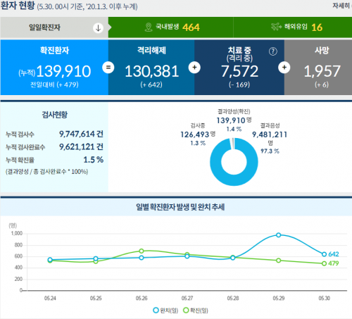 - Á߾ӹ濪´ëÃ¥º»ºÎ´Â 30ÀÏ 0½Ã ±âÁØ Äڷγª19 ±¹³» ¹ß»ý ½Å±Ô È®ÁøÀÚ 464¸í, ÇØ¿ÜÀ¯ÀÔ »ç·Ê°¡ 16¸íÀ¸·Î È®ÀεŠ½Å±Ô È®ÁøÀÚ°¡ ÃÑ 480¸í ´Ã¾ú´Ù°í ¹àÇû´Ù. ÀÌÆ²Â° 500¸í´ë¸¦ À̾î¿À´Ù°¡ ..
