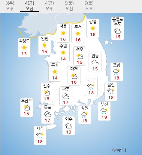 - Áß±¹ »óÇØ ºÎ±Ù¿¡¼ ºÏµ¿ÁøÇÏ´Â Àú±â¾ÐÀÇ ¿µÇâÀ¸·Î ¼ö¿äÀÏ(2ÀÏ) ¹ã(22~24½Ã) Á¦ÁÖµµ¿¡¼ ºñ°¡ ½ÃÀ۵Ǿî, ¸ñ¿äÀÏ(3ÀÏ) ¿ÀÀü(06~12½Ã)¿¡´Â ¼öµµ±Ç°ú ÃæÃ»±Ç, ³²ºÎÁö¹æÀ¸·Î, ¿ÀÈÄ(12~18½Ã)¿¡´Â..