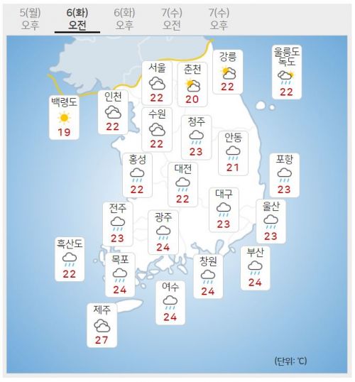 - Á¤Ã¼Àü¼±ÀÇ ¿µÇâÀ¸·Î ¿À´Ã(4ÀÏ)Àº Á¦ÁÖµµ¿Í ³²Çؾȿ¡ ºñ°¡ ¿À´Ù°¡ ¿ù¿äÀÏ(5ÀÏ) ³·(09~15½Ã)¿¡´Â Àü¶ó±Ç°ú °æ³²±Ç, ´ÊÀº ¿ÀÈÄ(15½Ã)ºÎÅÍ ¹ã(24½Ã) »çÀÌ¿¡´Â ÃæÃ»±Ç°ú °æºÏ±Ç³²ºÎ·Î È®´ëµÇ°Ú..