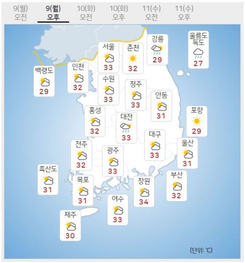 - ¿À´Ã(9ÀÏ ¿ù) Àü±¹ÀÌ ´ëü·Î È帮°Ú°í, µ¿Ç³ÀÇ ¿µÇâÀ¸·Î µ¿ÇØ¾È Á᫐ ¸¹Àº ºñ°¡ ³»¸®°Ú½À´Ï´Ù. °¿ø¿µ¼¿Í °æ»ó±Çµ¿ºÎ, Á¦ÁÖµµ´Â ¿À´Ã ³·(15½Ã)±îÁö, °¿ø¿µµ¿Àº ¿À´Ã ¹ã(21½Ã)±îÁö ºñ°¡ ¿À..
