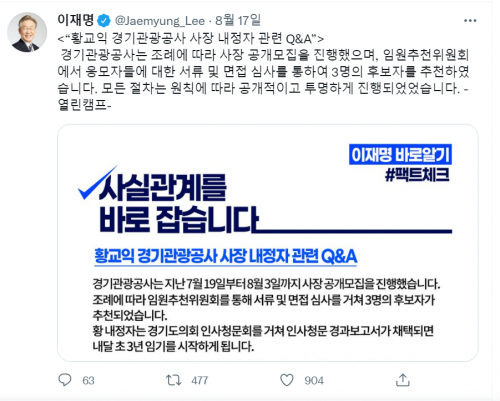 - ´õºÒ¾î¹ÎÁÖ´ç À¯·Â ´ë±Ç ÁÖÀÚÀÎ ÀÌÀç¸í °æ±âÁö»ç°¡ ¸À Ä®·³´Ï½ºÆ® Ȳ±³À;¾¸¦ °æ±â°ü±¤°ø»ç »çÀå¿¡ ³»Á¤ÇÑ °ÍÀ» µÎ°í ‘º¸Àº ÀÎ»ç’ ³í¶õÀÌ °Å¼¼Áö°í ÀÖ´Â °Í°ú °ü·Ã, ÀÌ Áö»ç ..