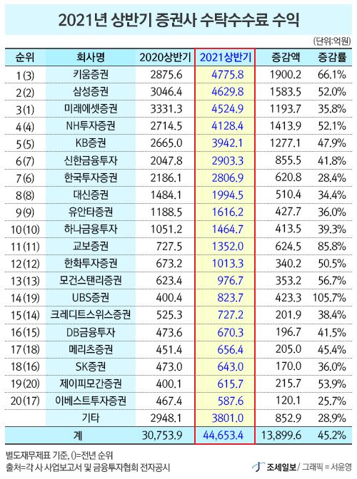- Ű¿òÁõ±ÇÀÇ ¿Ã »ó¹Ý±â ¼öʼö¼ö·á ¼öÀÍÀÌ 4775¾ï8000¸¸¿øÀ¸·Î Àü³â µ¿±â ´ëºñ 66.1% ±ÞÁõÇÏ¸ç ¾÷°è ¼±µÎ¸¦ Â÷ÁöÇß´Ù. µÚÀÌ¾î »ï¼ºÁõ±Ç, ¹Ì·¡¿¡¼ÂÁõ±Ç, NHÅõÀÚÁõ±Ç, KBÁõ±ÇÀÌ Åé5¸¦ À¯ÁöÇß´Ù..