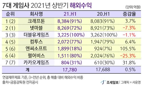 - Å©·¡ÇÁÅæÀÌ ³Ý¸¶ºíÀ» Á¦Ä¡°í ±¹³» 7´ë °ÔÀÓ»ç °¡¿îµ¥»ó¹Ý±â ÇØ¿Ü¼öÀÍÀ» °¡Àå ¸¹ÀÌ ¿Ã¸° ȸ»ç°¡ µÆ´Ù. ±¹³» °ÔÀÓ½ÃÀåÀÇ ½ÅÀÛ °æÀïÀÌ Ä¡¿ÇÑ °¡¿îµ¥ Å©·¡ÇÁÅæÀº Áß±¹ ½ÃÀå¿¡¼ÀÇ ¹èƲ±×¶ó¿îµå..