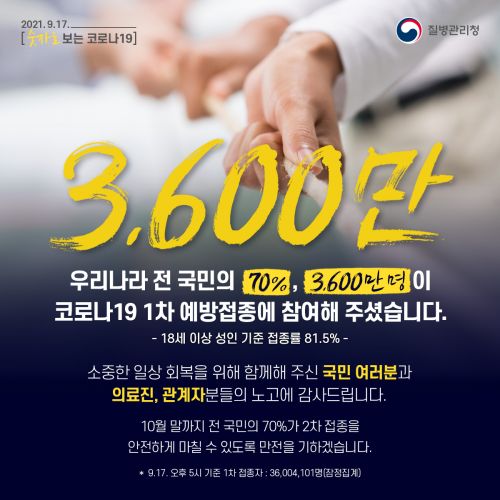 - 18ÀÏ Äڷγª19 ¹é½Å 1Â÷ ¿¹¹æÁ¢Á¾À» ¹ÞÀº ±¹¹ÎÀÌ Àüü Àα¸ÀÇ 70.3%¸¦ ³Ñ¾î¼¹´Ù. 17ÀϺÎÅÍ 23ÀϱîÁö ¼öµµ±Ç¿¡¼µµ Áý¿¡¼´Â ÃÖ´ë 8¸í±îÁö ¸ðÀÏ ¼ö ÀÖ´Â µî ¸ðÀÓ ±ÔÁ¦°¡ ¿ÏȵƴÙ. Áß¾Ó¹æ..