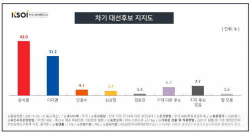 - TBS ÀÇ·Ú·Î Çѱ¹»çȸ¿©·Ð¿¬±¸¼Ò(KSOI)°¡ ±¹¹ÎÀÇÈû Â÷±â ´ë¼± È帰¡ È®Á¤µÈ Á÷ÈÄÀÎ Áö³ 5~6ÀÏ ½Ç½ÃÇÑ Á¤±â ÁÖ·ÊÁ¶»ç¿¡¼ 'Â÷±â ´ë¼±Èĺ¸ ÁöÁöµµ'¸¦ ¹°Àº °á°ú, À±¼®¿ 43.0%, ÀÌ..