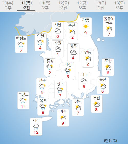 - Àü±¹ È帮°í °÷°÷ ºñ¡¤´«¡¦¾ÆÄ§ ÃÖÀú±â¿Â –3~9µµ2021.11.11 05:00