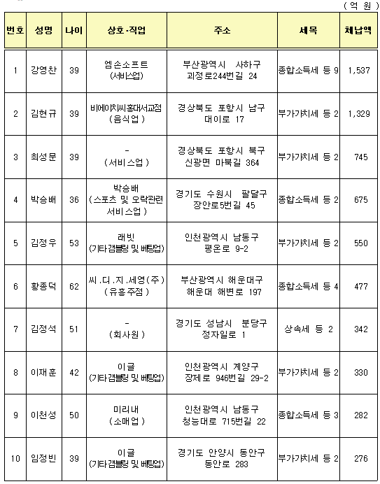• ±¹¼¼Ã»ÀÌ ¿ÃÇØ »õ·Î µî·ÏµÈ °í¾×·»ó½Àü³³ÀÚ 7016¸íÀ» È®Á¤ÇØ °ø°³Çß´Ù. ºÒ¼º½Ç ±âºÎ±Ý ¼ö·É´Üü 37°³, Á¶¼¼Æ÷Å»¹ü 73¸íÀÇ ÀÎÀû »çÇ× µîµµ ±¹¼¼Ã» ´©¸®Áý(ȨÆäÀÌÁö)À» ÅëÇØ °ø°³Çß..