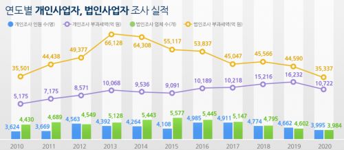 - Äڷγª19 È®»êÀÌ ½ÃÀÛµÈ 2020³â ±¹¼¼Ã»ÀÇ ¹ýÀÎ ¼¼¹«Á¶»ç °Ç¼ö¿Í ºÎ°ú¼¼¾×ÀÌ Àü³â¿¡ ºñÇØ ÁÙ¾îµç °ÍÀ¸·Î Áý°èµÆ´Ù. Á¤±âÁ¶»ç´Â ¹°·Ð, Ưº°¼¼¹«Á¶»ç¶ó ºÒ¸®´Â ºñÁ¤±âÁ¶»çµµ °¨¼ÒÇß´Ù. ±¹..
