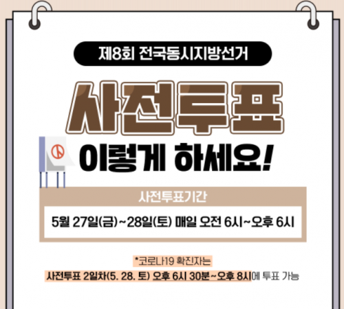 - Áß¾Ó¼±°Å°ü¸®À§¿øÈ¸´Â 6.1 Áö¹æ¼±°Å¿Í º¸±È¼±°ÅÀÇ »çÀüÅõÇ¥°¡ 5¿ù 27Àϰú 28ÀÏ ÀÌÆ² °£ Àü±¹ 3551°³ ÅõÇ¥¼Ò¿¡¼ ½Ç½ÃµÈ´Ù°í ¹àÇû´Ù. ÀÏ¹Ý À¯±ÇÀÚ´Â ¿ÀÀü 6½ÃºÎÅÍ ¿ÀÈÄ 6½Ã±îÁö ÅõÇ¥ÇÒ ¼ö..