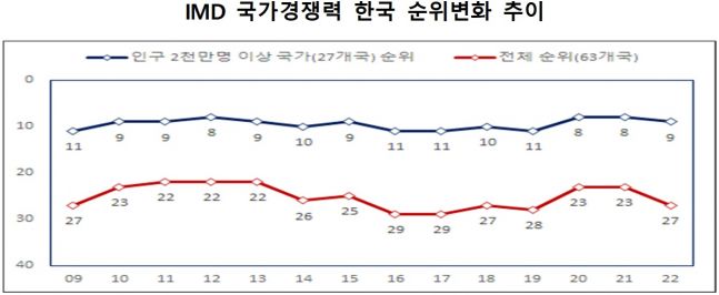 - ¿ì¸®³ª¶ó°¡ ¿ÃÇØ ½ºÀ§½º ±¹Á¦°æ¿µ°³¹ß´ëÇпø(IMD) ±¹Á¦°æÀï·Â Æò°¡¿¡¼ À۳⺸´Ù ³× ´Ü°è ¶³¾îÁø 27À§¸¦ ±â·ÏÇß´Ù. ±âȹÀçÁ¤ºÎ´Â '2022³â IMD ±¹°¡°æÀï·Â Æò°¡' °á°ú, ¿ì¸®³ª¶ó..