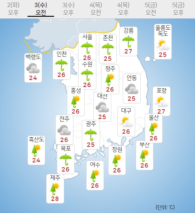• ¼ö¿äÀÏÀÎ 3ÀÏ, Àü±¹ÀÌ ´ëü·Î È帮´Ù°¡ ¿ÀÈĺÎÅÍ ±¸¸§¸¹°Ú½À´Ï´Ù. ¼öµµ±Ç°ú °­¿øµµ, ÃæÃ»ºÏºÎ, °æºÏºÏºÎ, ÀüºÏ³²ºÎ´Â ¿ÀÀü±îÁö, Àü³²±Ç°ú °æ³²±Ç, Á¦ÁÖµµ´Â ´ÊÀº ¿ÀÈıîÁö 20~60mmÀÇ ºñ..