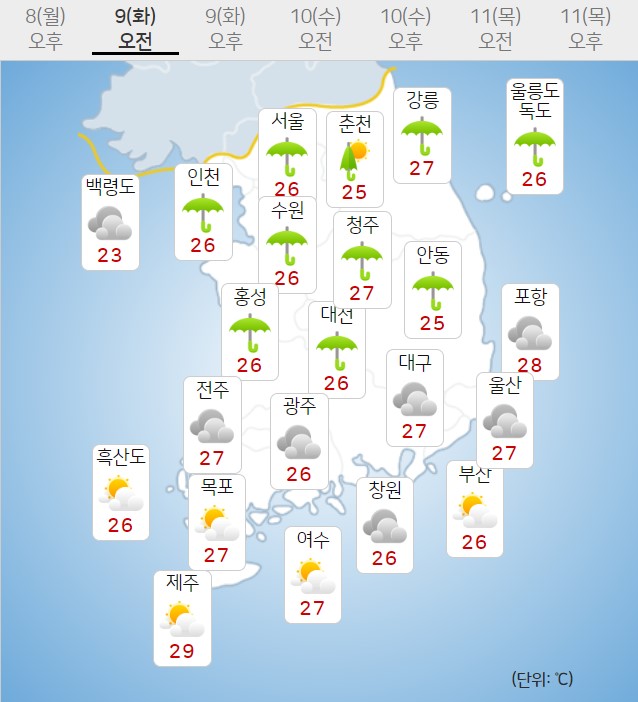 - È¿äÀÏÀÎ 9ÀÏ, Àü±¹ÀÌ ´ëü·Î È帰 °¡¿îµ¥ ÁߺÎÁö¹æÀ» Áß½ÉÀ¸·Î ¸¹Àº ºñ°¡ ³»¸®°í ³²ºÎÁö¹æÀº ¹«´õÀ§°¡ À̾îÁö°Ú½À´Ï´Ù. * ¿¹»ó °¼ö·®(8~10ÀÏ) - ¼öµµ±Ç, °¿ø³»·ú·»êÁö, ÃæÃ»..