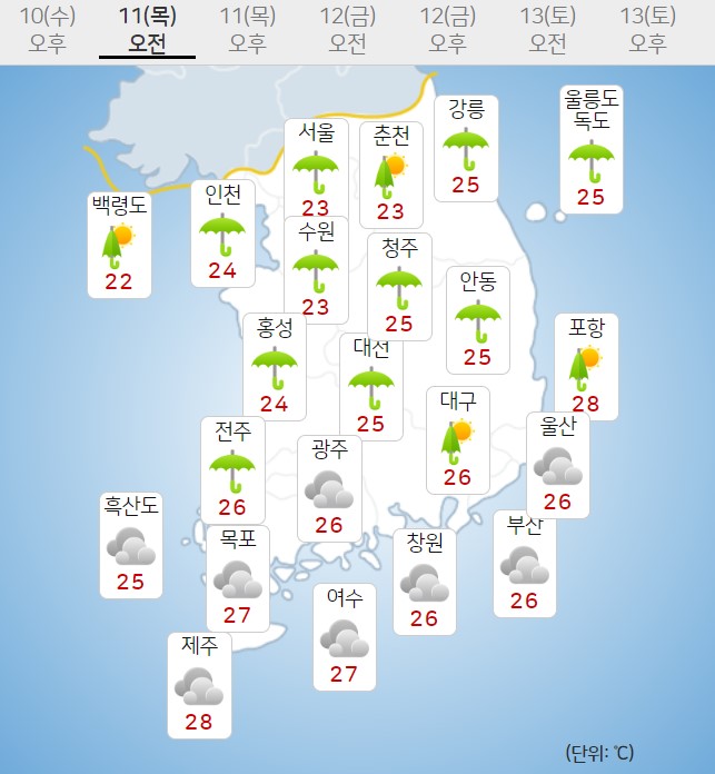 - ¸ñ¿äÀÏÀÎ 11ÀÏ, Á¤Ã¼Àü¼±ÀÇ ¿µÇâÀ¸·Î Àü±¹ÀÌ ´ëü·Î È帮°í ºñ°¡ ³»¸®°Ú½À´Ï´Ù. ºñ´Â 12ÀÏ ¿ÀÀü±îÁö À̾îÁö°Ú½À´Ï´Ù. * ¿¹»ó °¼ö·®(10~12ÀÏ) - ÃæÃ»±Ç, °æºÏºÏºÎ³»·ú, ÀüºÏ: 80~200mm(..