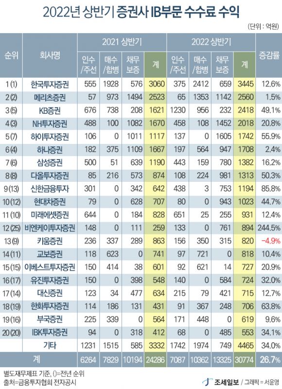 - ¿ÃÇØ »ó¹Ý±â IB(ÅõÀÚÀºÇà) °ü·Ã ¼ö¼ö·á ¼öÀÍÀº Çѱ¹ÅõÀÚÁõ±ÇÀÌ ¸Å¼öÇÕº´ ºÎ¹®¿¡¼ ¾÷°è ÃÖ°íÀÎ 2412¾ï¿øÀ» ±â·ÏÇÏ´Â µî ÃÑ 3445¾ï¿øÀ» ¹ú¾îµéÀÌ¸ç ‘IB °ÀÚ’ ŸÀÌÆ²À» ÁöÄ×´Ù. ..